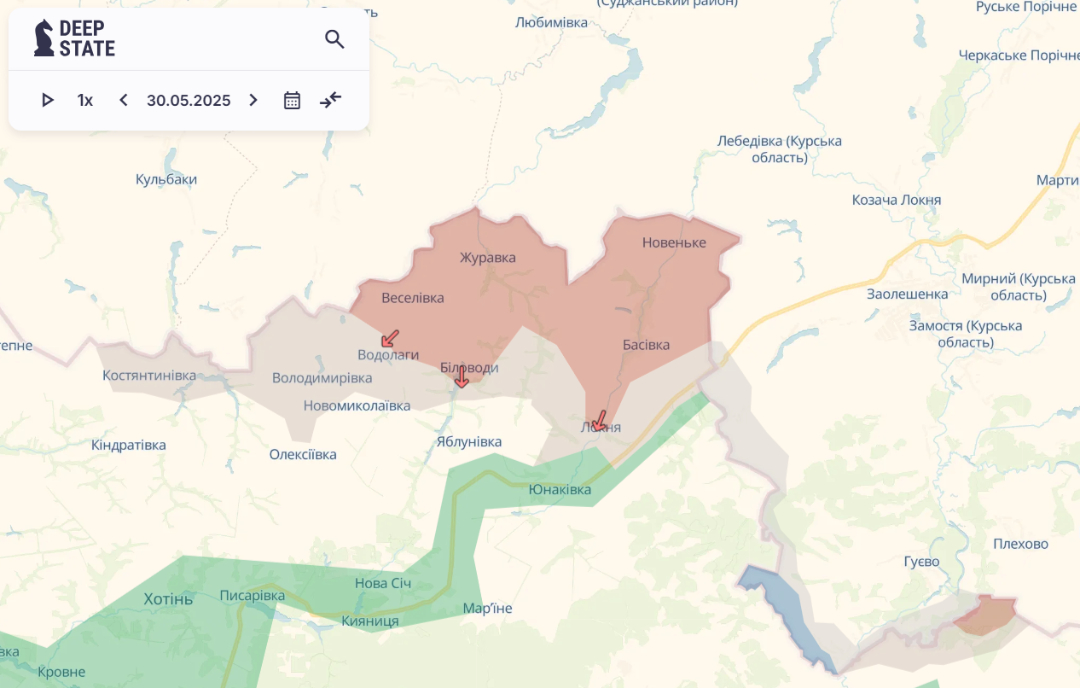Станом на ранок 1 червня зона у прикордонні Сумської області, яку можуть контролювати російські сили, становить понад 108 квадратних кілометрів. При цьому ще вчора площа цієї зони були близько 93 квадратні кілометри.