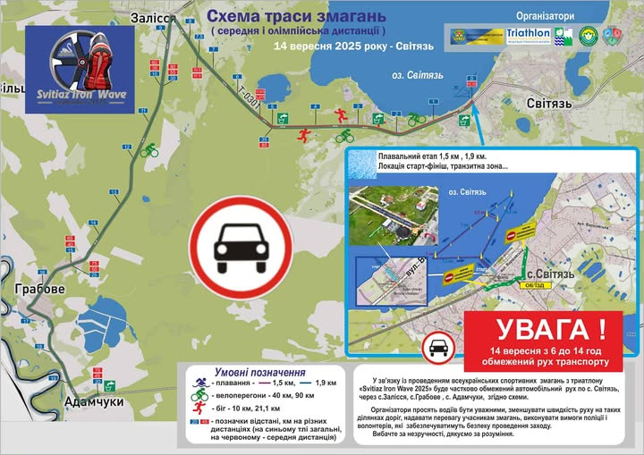 14 вересня в селі Світязь відбудуться Всеукраїнські спортивні змагання з триатлону «Svitiaz Iron Wave 2025».