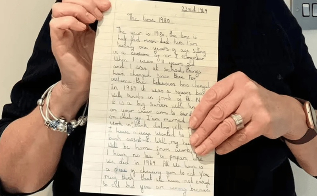 У британському місті Пітерборо 67-річний майстер Пітер Бекертон, який реставрував старі меблі, знайшов у дивані шкільний твір 11-річної дитини, написаний ще 1969 року. В ньому виявились моторошно точні передбачення деяких технологій, які сьогодні є у повсякденному вжитку.