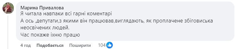P.S. А тим, хто сьогодні «скаче на кістках», скажу: хто б не прийшов на місце Ігоря Ігоровича, ви так само з часом будете його чи її рвати на шматки, бо не за місто ви переживаєте. Вам не дає спокою чужа успішність, і натура у вас така. Як буває в житті: маючи — не цінуємо, а втративши — плачемо», - написала жінка.