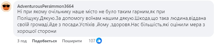 Серед лучан вже кілька днів тривають дискусії щодо рішення міського голови Ігоря Поліщука подати у відставку. Мешканці міста у своїх дописах та коментарях висловлюють вдячність очільнику Луцька за роботу на посаді мера та називають його найкращим головою міста за останні роки. Проте, є і негативні відгуки лучан про Поліщука.