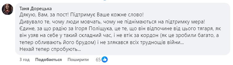 У коментарях дуже багато лучан підтримали її думку і подякували Ігорю Поліщуку за його роботу.