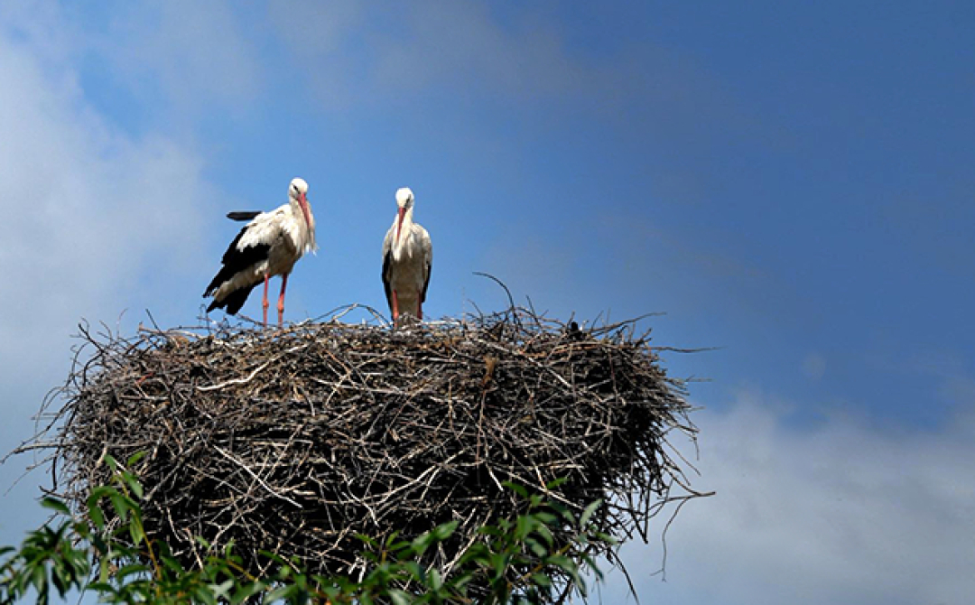 У небі на заході України під звуки повітряної тривоги ружляли двоє лелек
